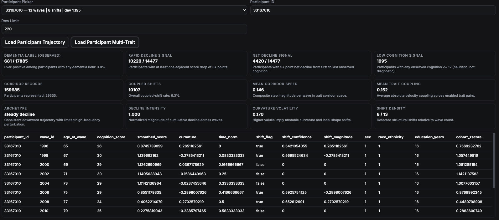 Health DKM turns complex longitudinal Health and Retirement Study (HRS) data into actionable system intelligence. Instead of static reporting, teams get decision-ready views of trajectory risk, transition pressure, and intervention timing.